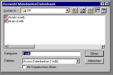 Bemerkung: Beachten Sie, dass als Datei "Ihre" Daten-Datenbank (Akfakt-d.mdb
