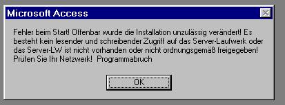 verbergen (Beschädigte Datenbank, Netzwerk gestört usw.).