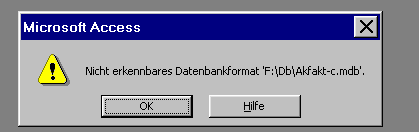 (hier "F:\ db \akfakt-d.mdb") angezeigt würde.